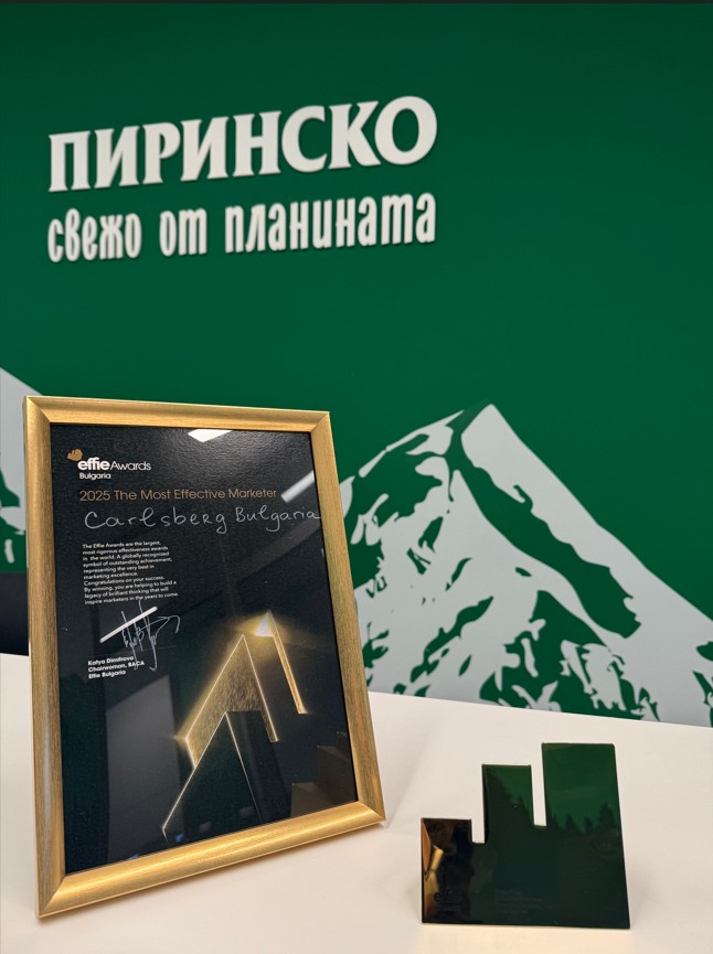 Carlsberg е отличен за най-ефективен рекламодател за 2025 г. в конкурса Effie Awards 2025. Марка Пиринско спечели признание за най-ефективна търговска марка. А Златната Effie награда в категория "Устойчив успех" отиде при Пиринско Младо Пиво.
