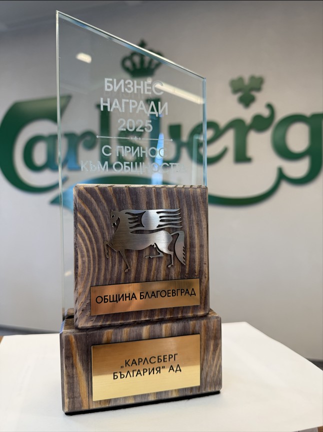 Carlsberg България беше отличена с награда на Община Благоевград за своя принос към развитието на местната общност. Признанието подчертава устойчивото партньорство между компанията и общината, както и активната роля на пивоварната в Благоевград в социалния и икономическия живот на региона.