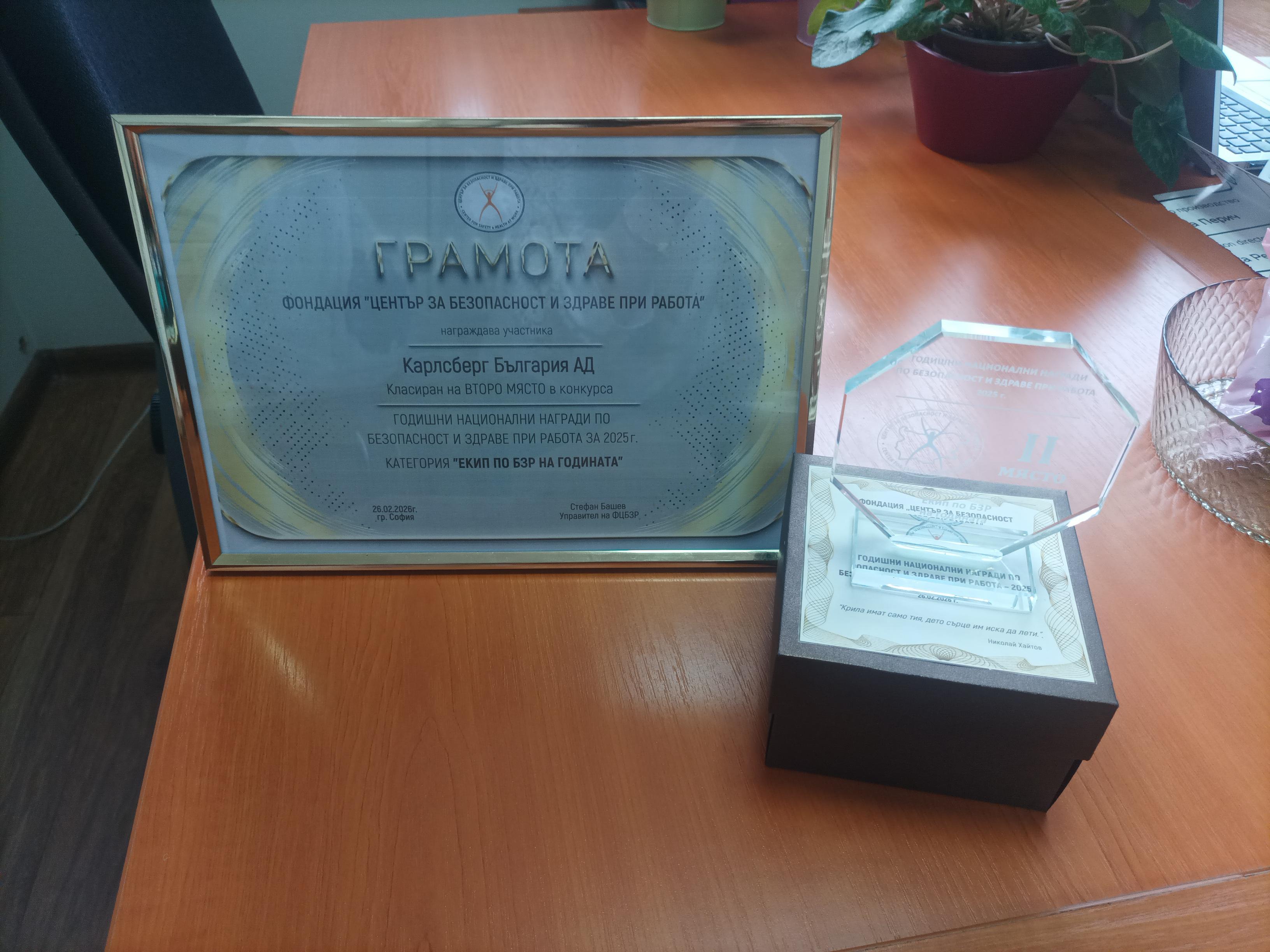Наградата е признание за последователния и системен подход на компанията към безопасността като ключов стратегически приоритет и неразделна част от корпоративната култура на Carlsberg Group, прилагана във всички локации на Carlsberg България.